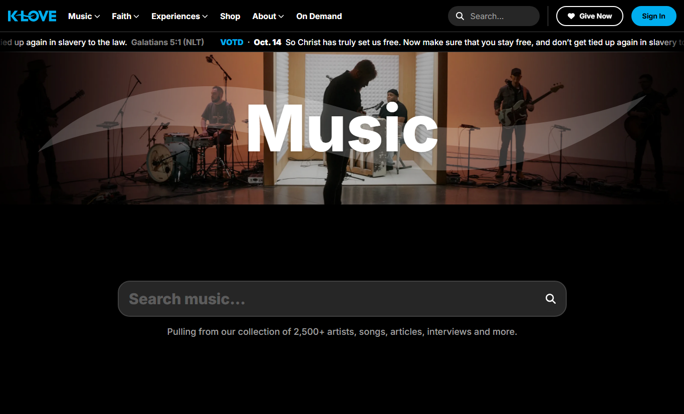 Large gospel library from classic hymns to contemporary hits, with ad-free listening and exclusive content for subscribers.