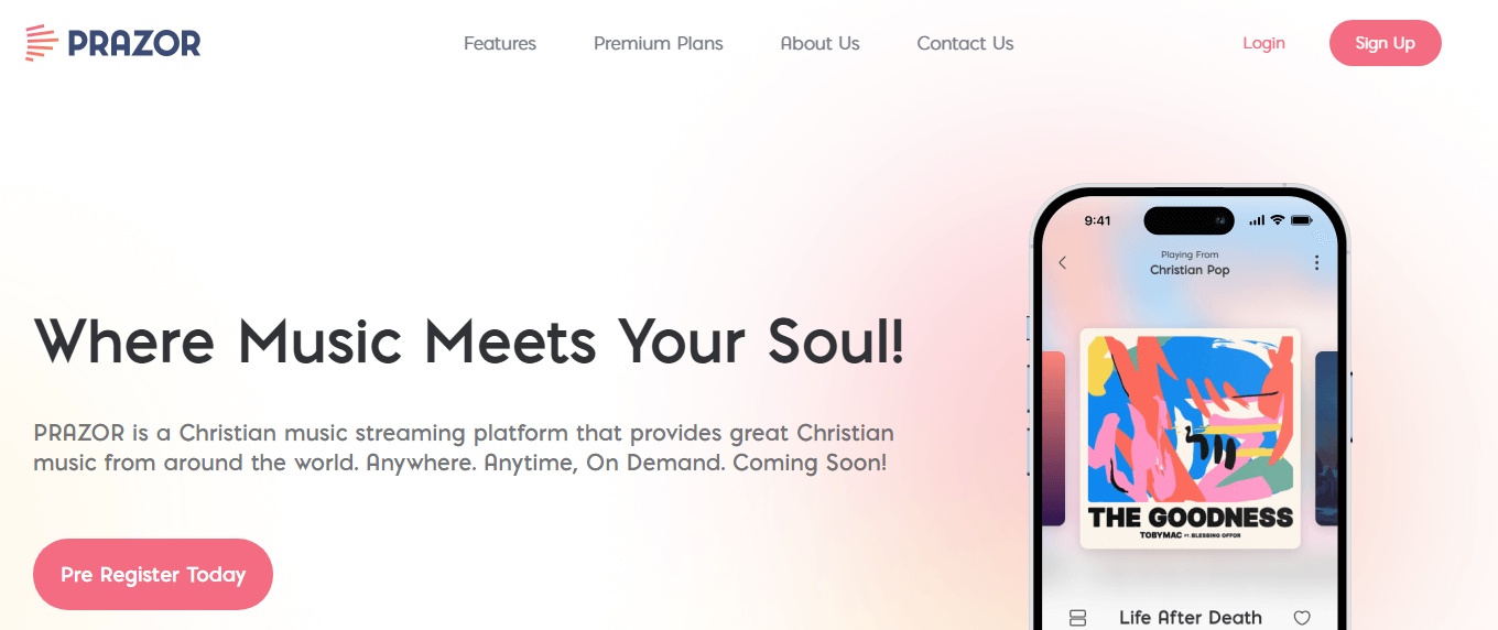 PRAZOR is a Christian music streaming platform offering thousands of hand-curated Christian songs from around the world. Accessible anytime and anywhere, PRAZOR provides faith-based music on demand through its mobile app and smart devices.