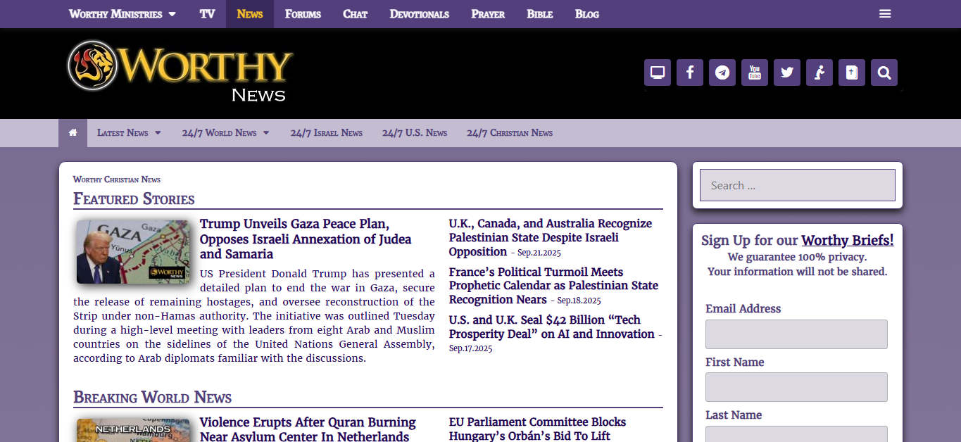 Prophetically Relevant News: Carefully curated stories that matter to believers.