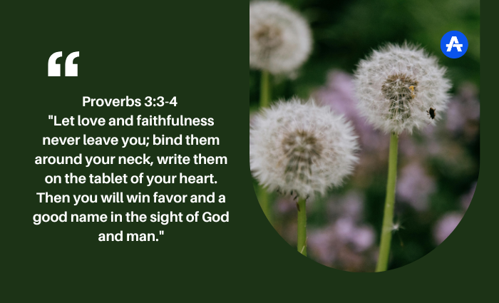 "Let love and faithfulness never leave you; bind them around your neck, write them on the tablet of your heart. Then you will win favor and a good name in the sight of God and man."