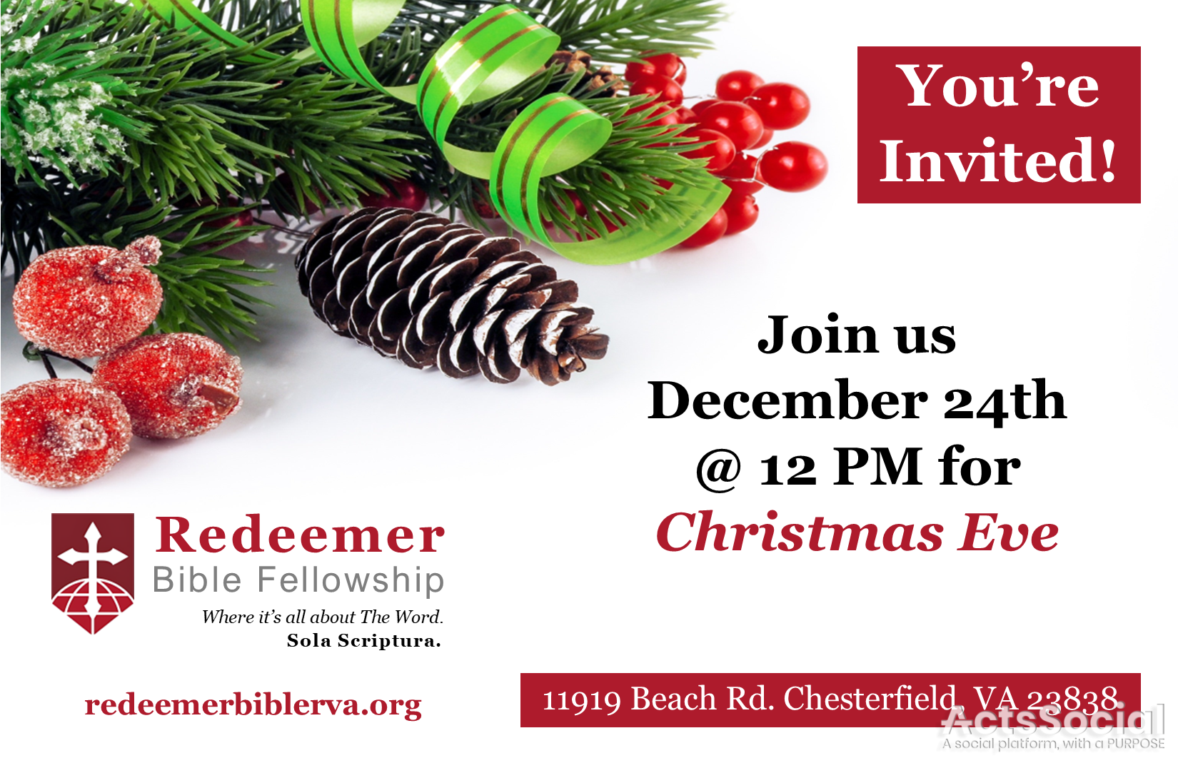 If you are in the Chesterfield, VA area, join us at Redeemer Bible Fellowship @ 12 PM on Sundays and @ 6:30 PM on Wednesdays. Sola Scriptura. redeemerbiblerva.org