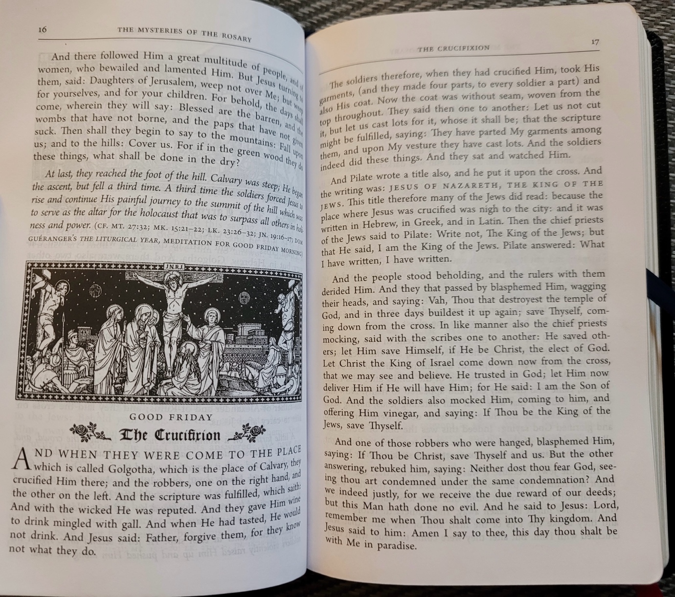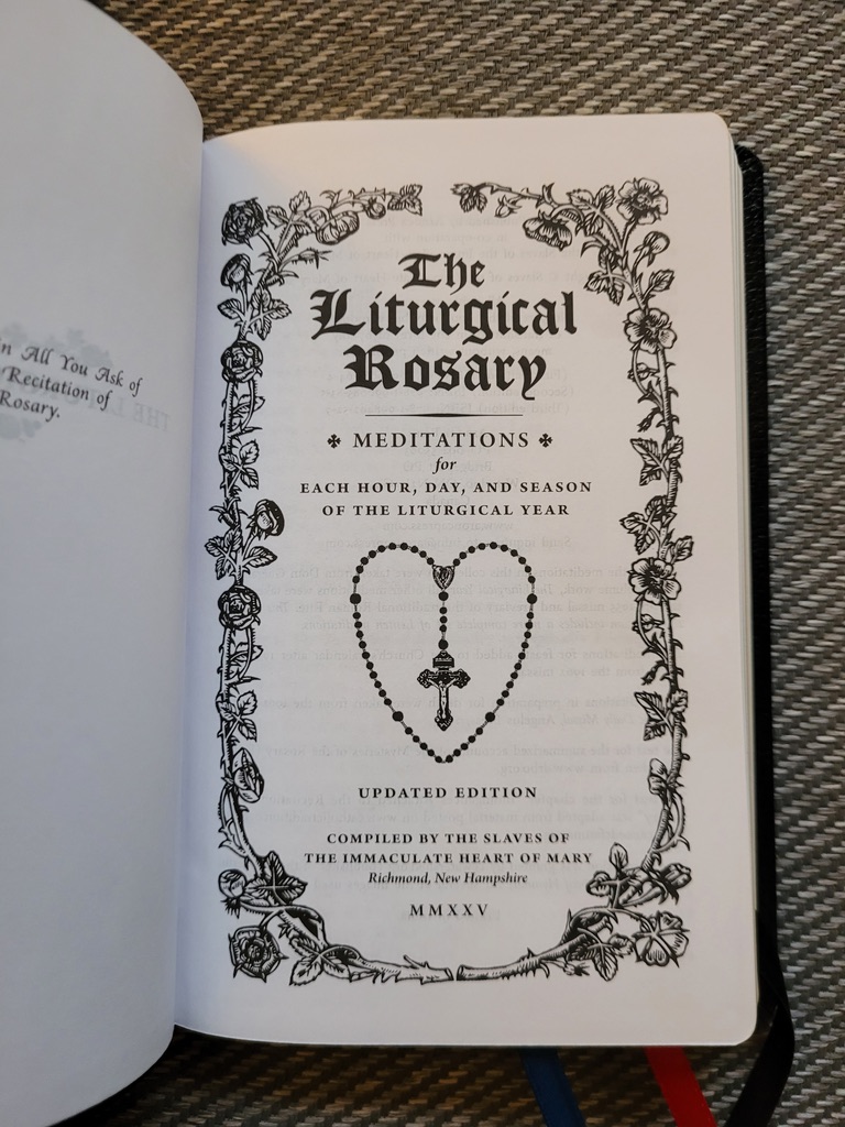 This small book (about the size of a hand missal, but just a little more than a centimeter thick, with a proper Smyth-sewn binding) contains hundreds of texts to be announced at the start of each mystery of the Rosary.